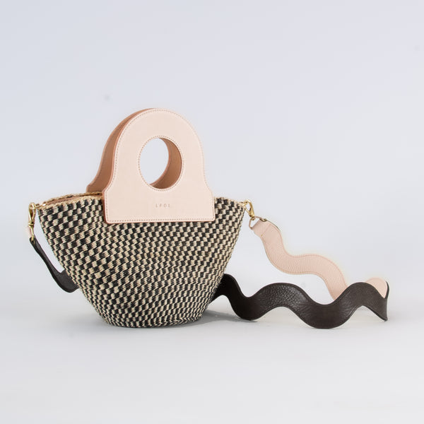 Made in partnership with an all-female cooperative basket weavers group in Kenya, this is our new beautiful handwoven sisal basket finished with our signature chrome-free, naturally dyed Italian leather. Each basket is made by hand in Kenya, then embellished and finished with surplus and deadstock leather by our local makers in the South East of England. Complete with reversible Squiggle Strap to wear over the shoulder or cross-body.