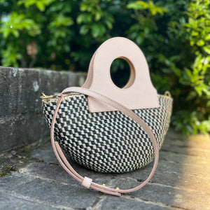 Made in partnership with an all-female cooperative basket weavers group in Kenya, this is our new beautiful handwoven sisal basket finished with our signature chrome-free, naturally dyed Italian leather. Each basket is made by hand in Kenya, then embellished and finished with surplus and deadstock leather by our local makers in the South East of England. Complete with reversible Squiggle Strap to wear over the shoulder or cross-body.